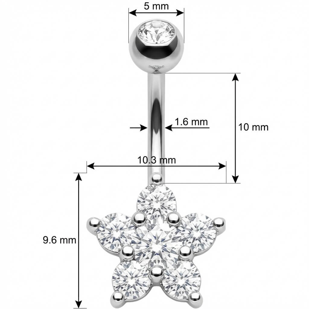 Prête à briller ? Cette fleur en cristal éblouissante est l'indispensable de ton été. Fabriqué en acier chirurgical 316L de haute qualité, ce bijou apporte une touche sexy et lumineuse à ton nombril. Que ce soit à la plage ou en soirée, c'est le véritable accroche-regard qui sublimera ta silhouette !