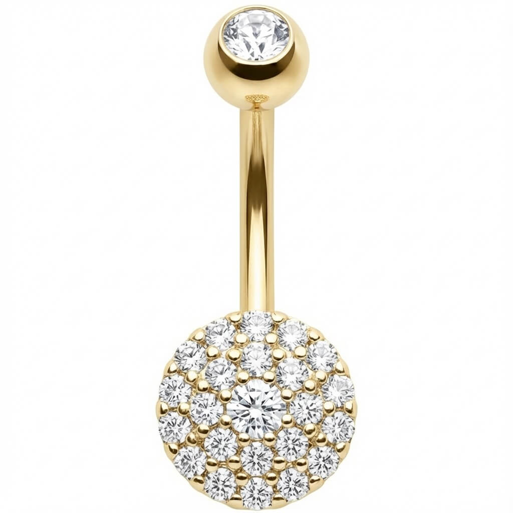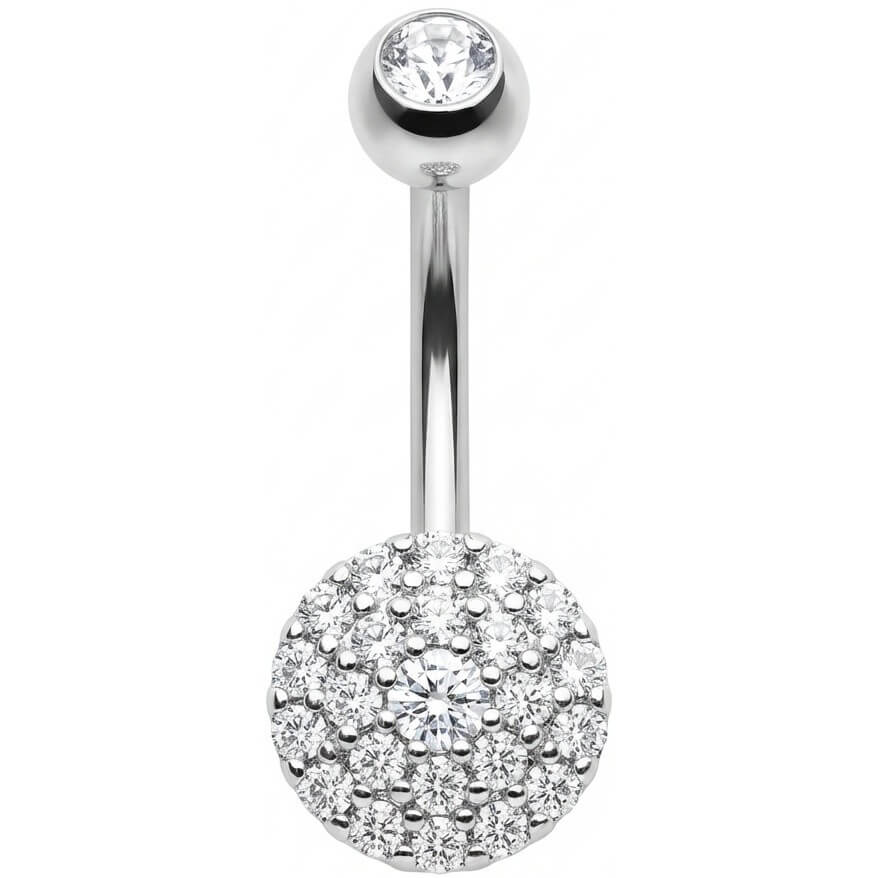 Fais briller ton nombril ! Ce bijou sublime arbore un disque rond entièrement pavé de cristaux étincelants qui captent la lumière à chaque mouvement. C'est l'accessoire sexy incontournable pour tes vibes d'été. Fabriqué en acier chirurgical 316L de haute qualité, il est aussi résistant que stylé. Un véritable aimant à regards !