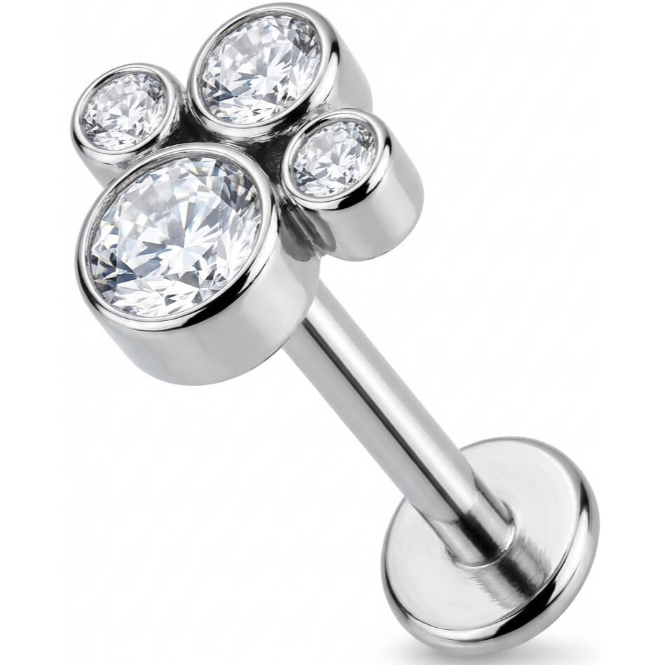 Affiche ton amour pour nos amis à quatre pattes avec style ! Ce design en forme de patte est orné de quatre cristaux clairs étincelants qui attirent tous les regards. Fabriqué en Titane de haute qualité, il est hypoallergénique et super confortable à porter au quotidien. Idéal pour ton hélix, tragus ou lobe, ce petit bijou apporte une touche fun et brillante à ta composition d'oreilles.