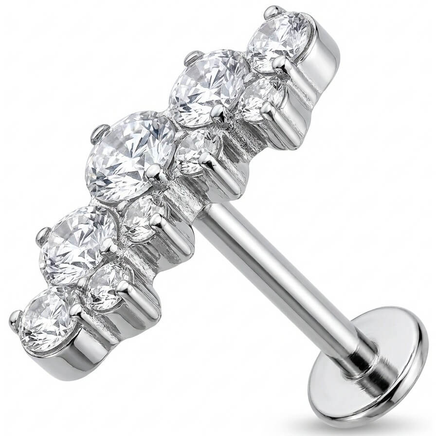 Sublime ton style avec cette superbe courbe étincelante. Fabriqué en Titane de haute qualité, ce bijou épouse parfaitement la forme de ton oreille avec ses cristaux lumineux en taille dégradée. C'est la pièce idéale pour ton hélix ou ton conch, ajoutant une touche d'éclat sophistiquée à ta composition. Hypoallergénique et ultra-tendance, cet accessoire deviendra vite ton favori pour briller au quotidien.