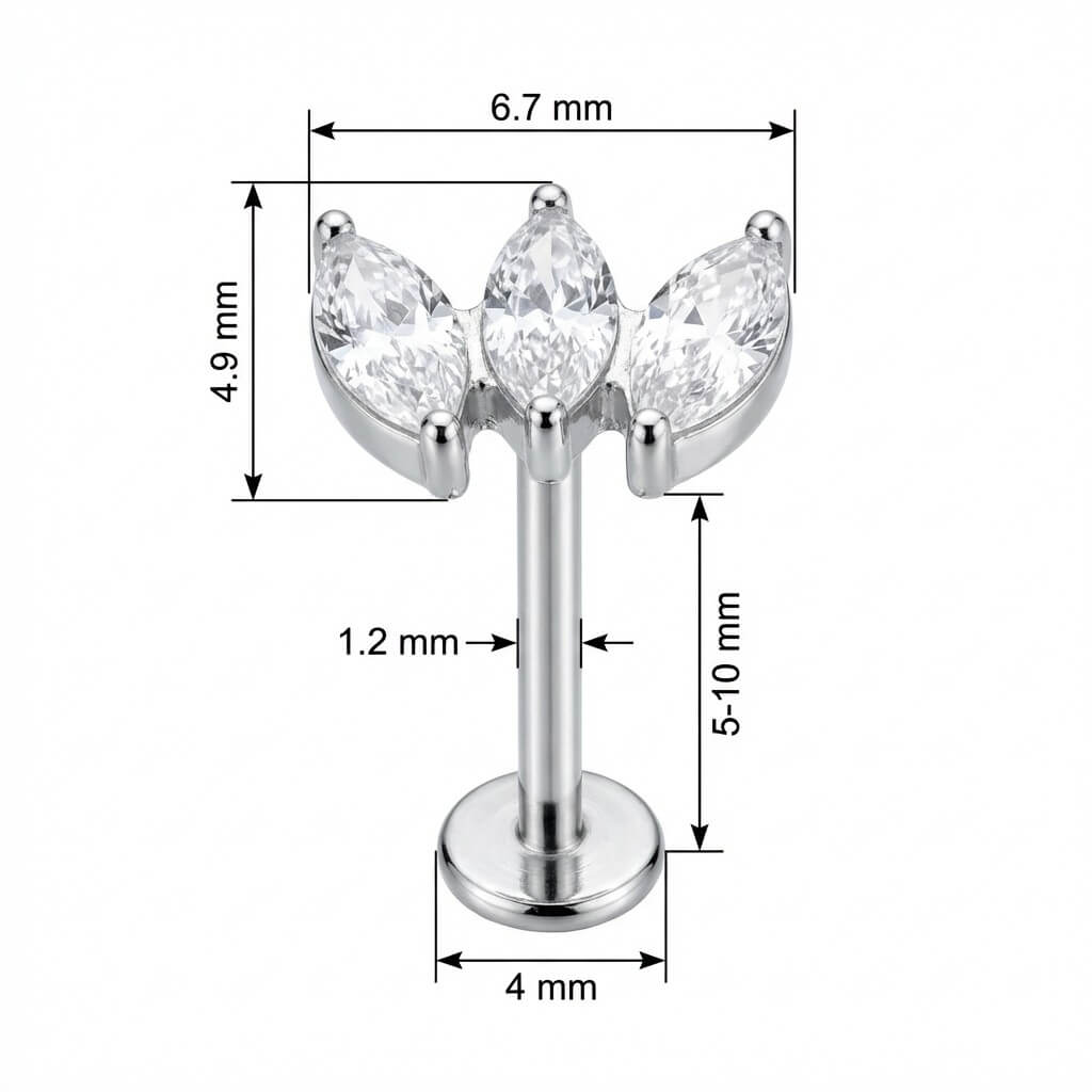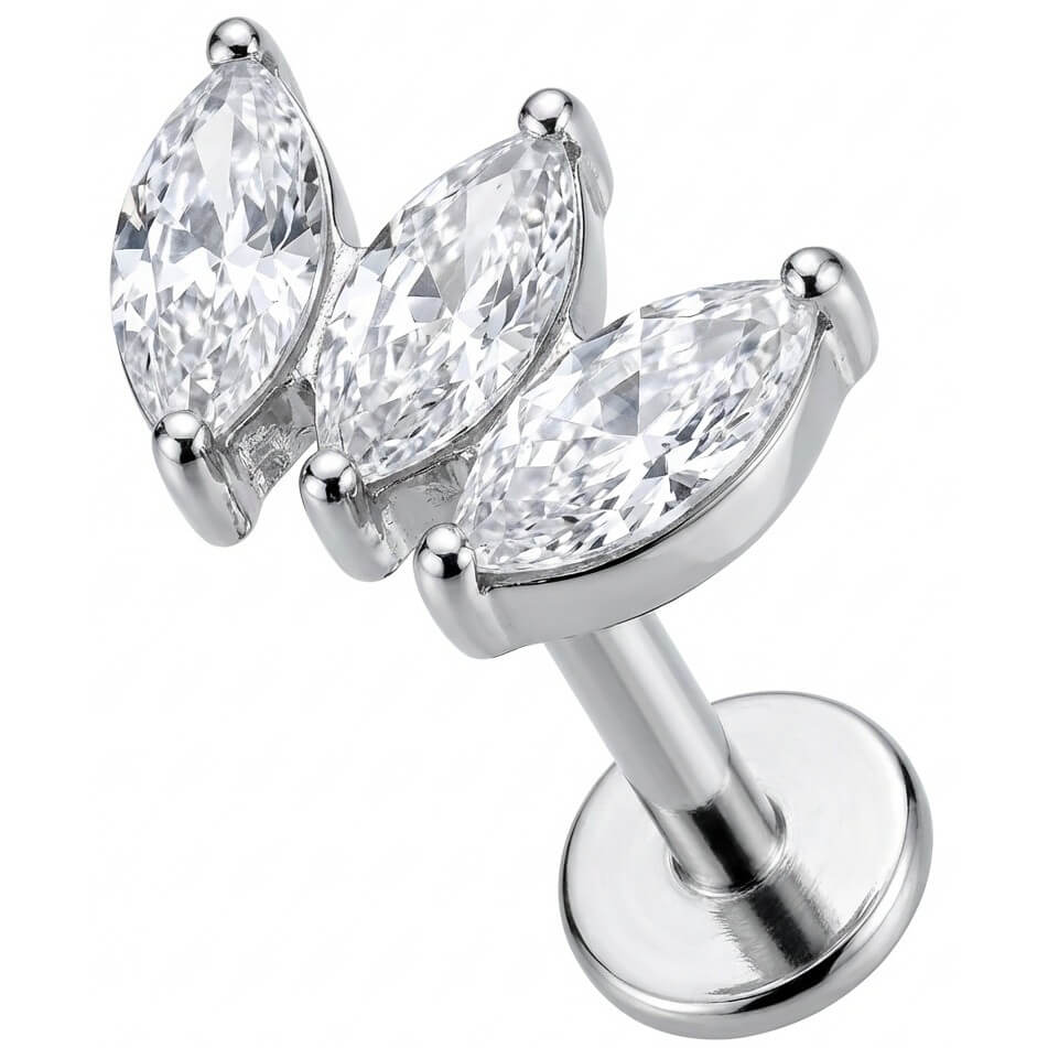 Titane Labret Éventail Triple Cristal Marquise Filetage Interne