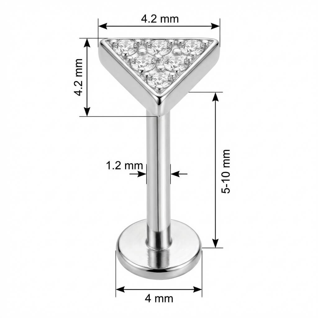 Titane Labret Triangle Pavé De Cristaux Filetage Interne