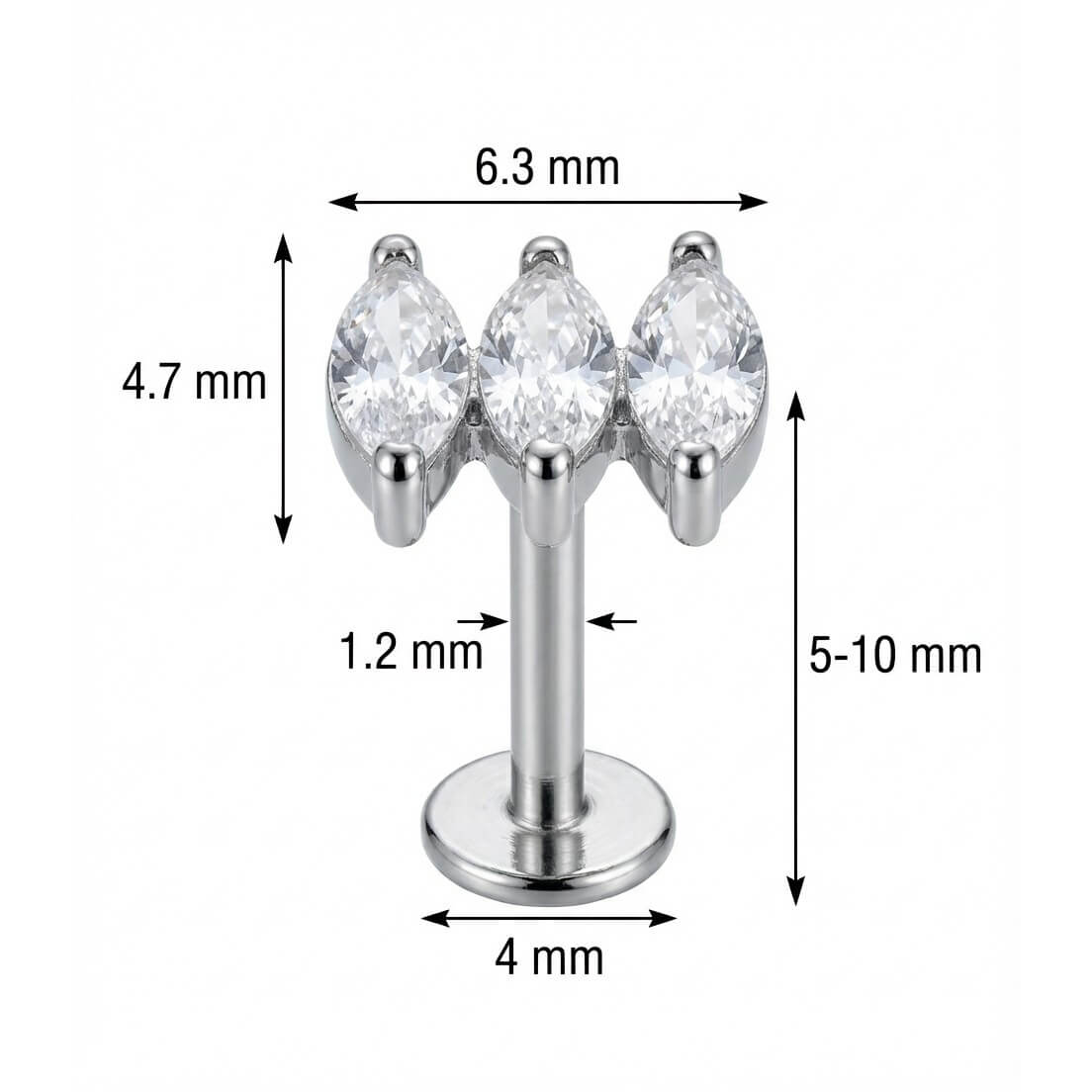 Illumine ta composition d'oreilles avec ce trio éblouissant. Composé de trois cristaux taille marquise, ce design capte la lumière à la perfection pour un effet waouh garanti. Fabriqué en Titane de haute qualité, il assure un confort optimal et une durabilité exceptionnelle pour ton hélix, conch ou lobe.
