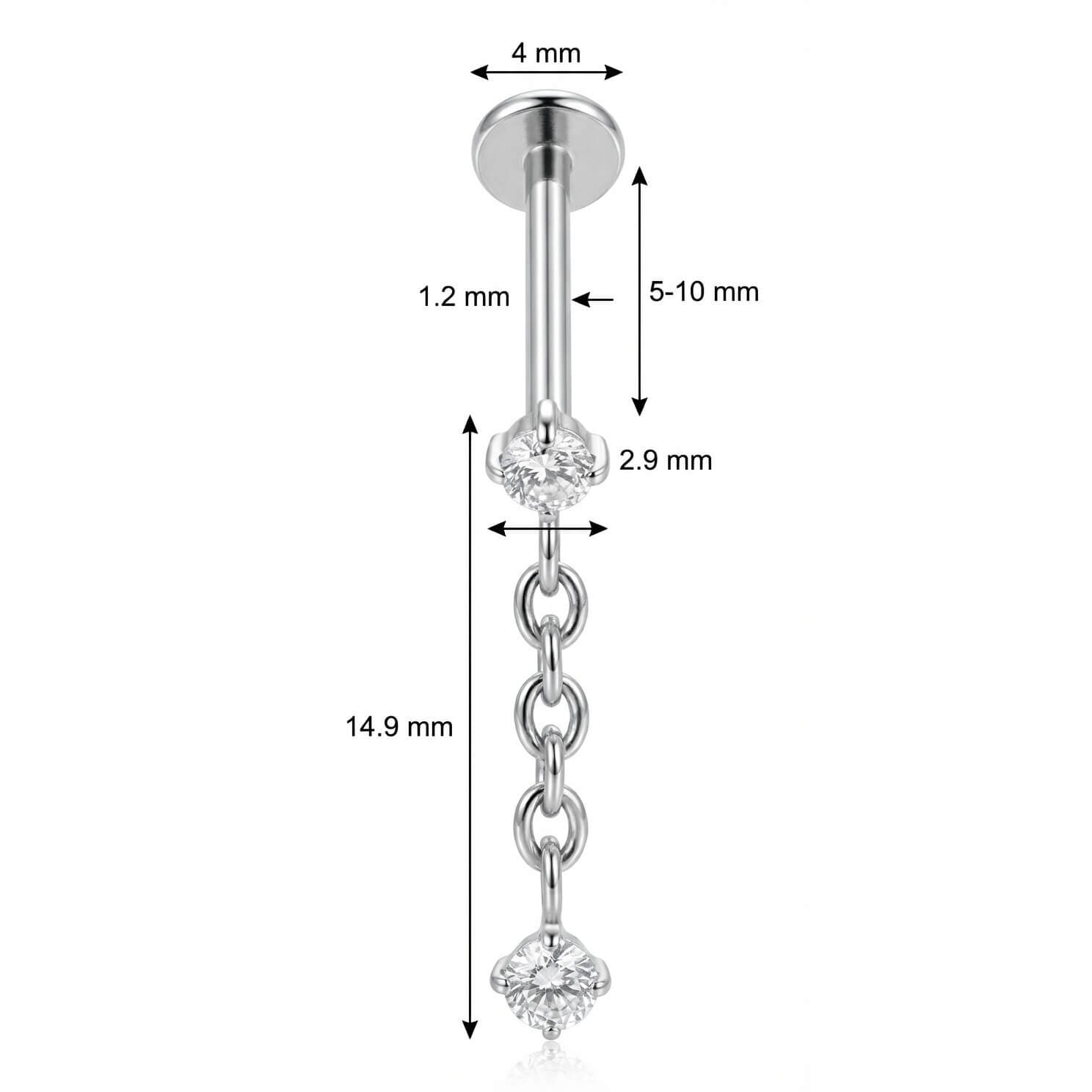 Ajoute une touche d'éclat et de mouvement à ton style. Ce bijou magnifique présente un cristal scintillant relié à une chaîne délicate qui se termine par une autre pierre brillante. Fabriqué en Titane de haute qualité, il est doux pour ta peau et résistant. C'est l'accessoire idéal pour sublimer ton hélix ou ton lobe avec une touche glamour.