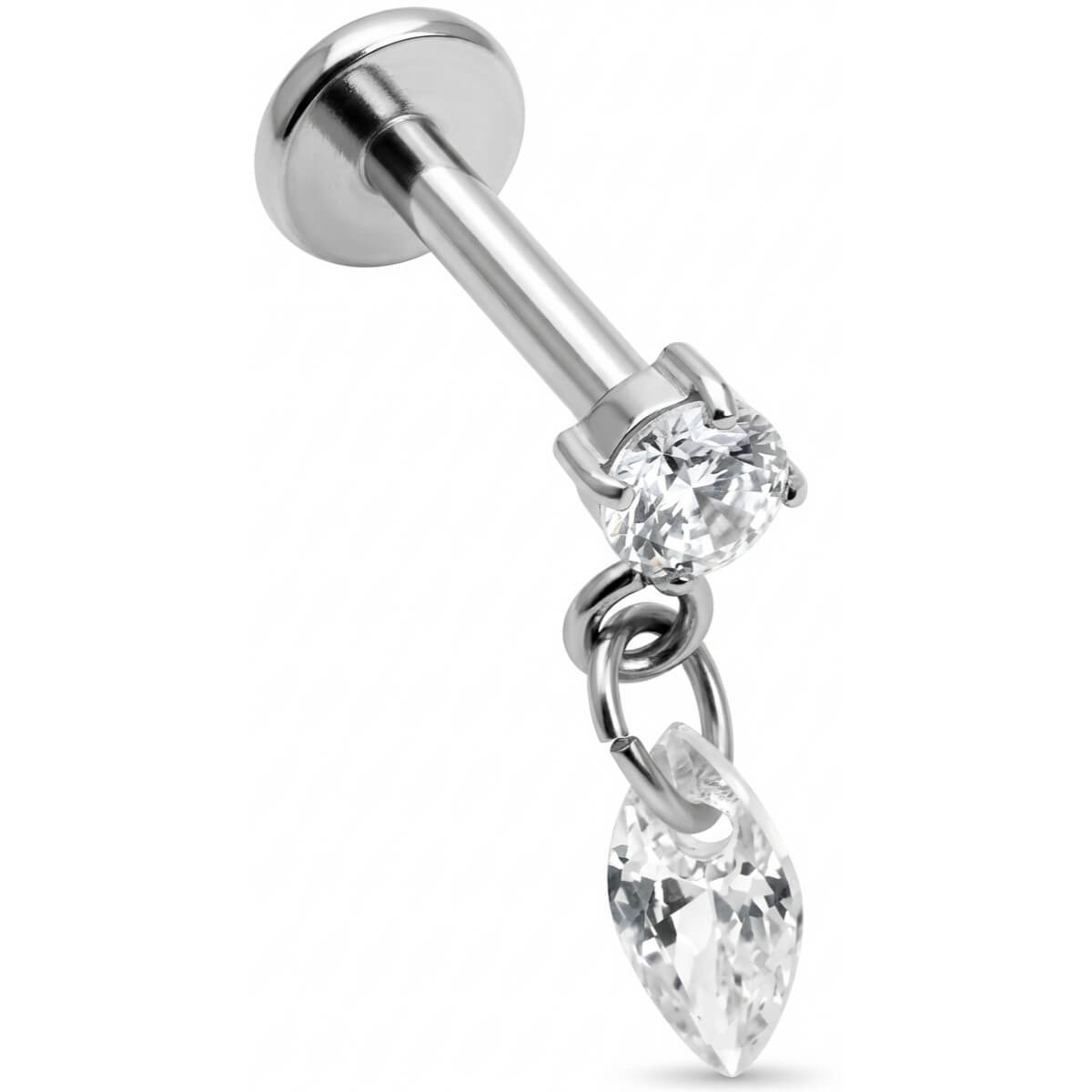 Titane Labret Cristal Rond Et Pendentif Marquise Filetage Interne