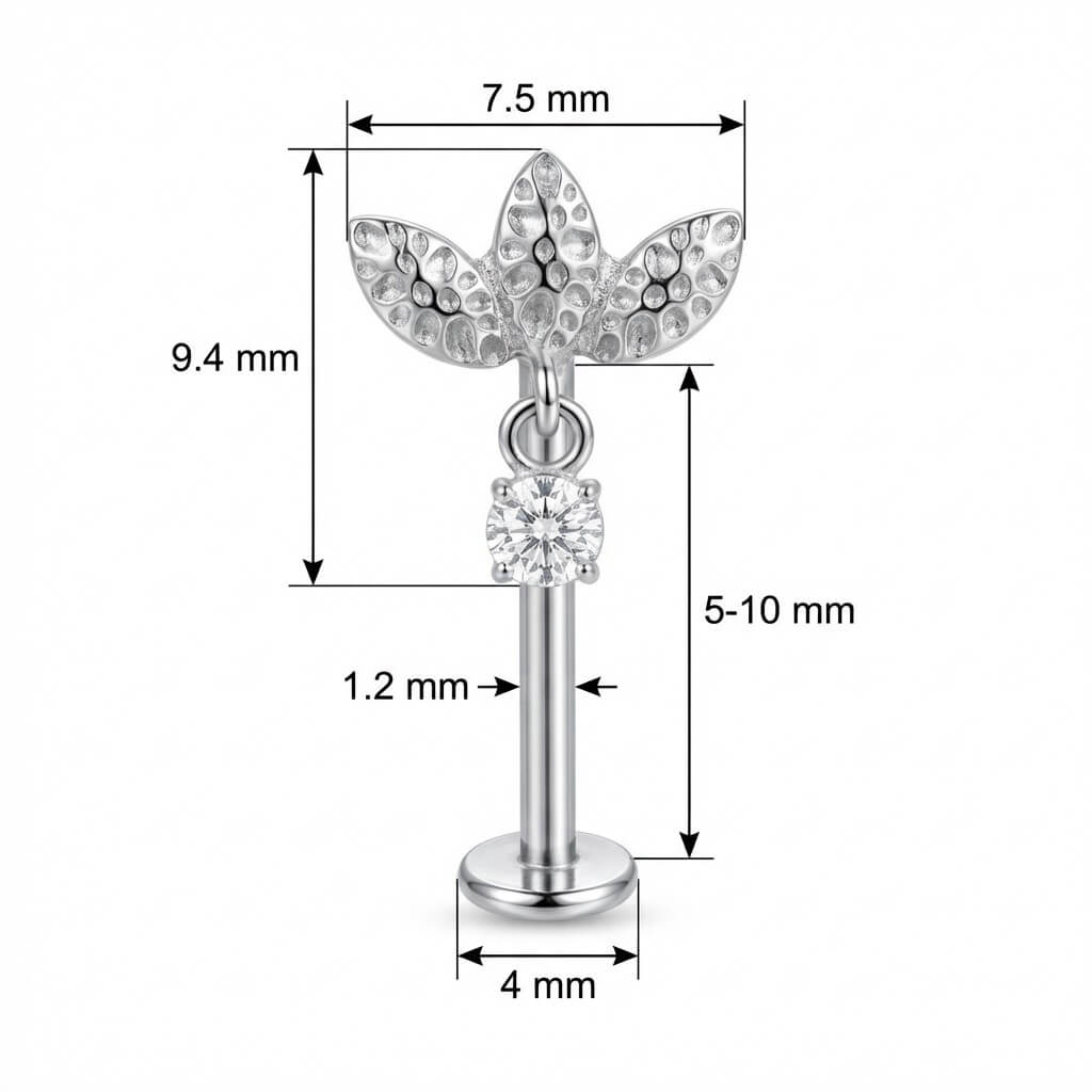 Ajoute une touche nature et glamour à ton style. Ce bijou dévoile trois feuilles à la texture martelée unique, accompagnées d'un petit cristal suspendu qui capte la lumière à chaque mouvement. Fabriqué en titane de qualité supérieure, il est aussi doux pour ta peau qu'il est stylé. L'accessoire idéal pour sublimer ta composition d'oreille.