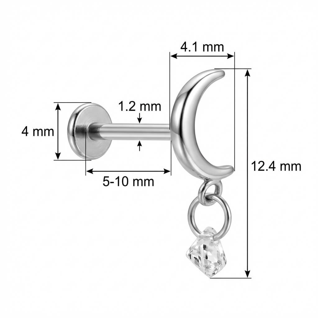 Ajoute une touche céleste à ton style. Ce magnifique croissant de lune est orné d'un petit cristal suspendu qui brille intensément à chaque mouvement. Fabriqué en titane de qualité supérieure, il est hypoallergénique et résistant. C'est l'accessoire idéal pour sublimer ta composition d'oreilles avec une note de féerie.