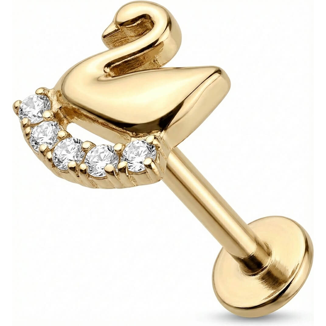 Incarne l'élégance pure avec ce superbe design de cygne. Posé sur une courbe délicate de pierres claires scintillantes, ce bijou apporte une touche de grâce à ta composition d'oreilles. Fabriqué en Titane de haute qualité, il est hypoallergénique et résistant, idéal pour être porté tous les jours. Parfait pour ton hélix, flat ou lobe, laisse ce cygne illuminer ton style.