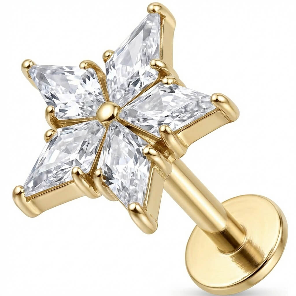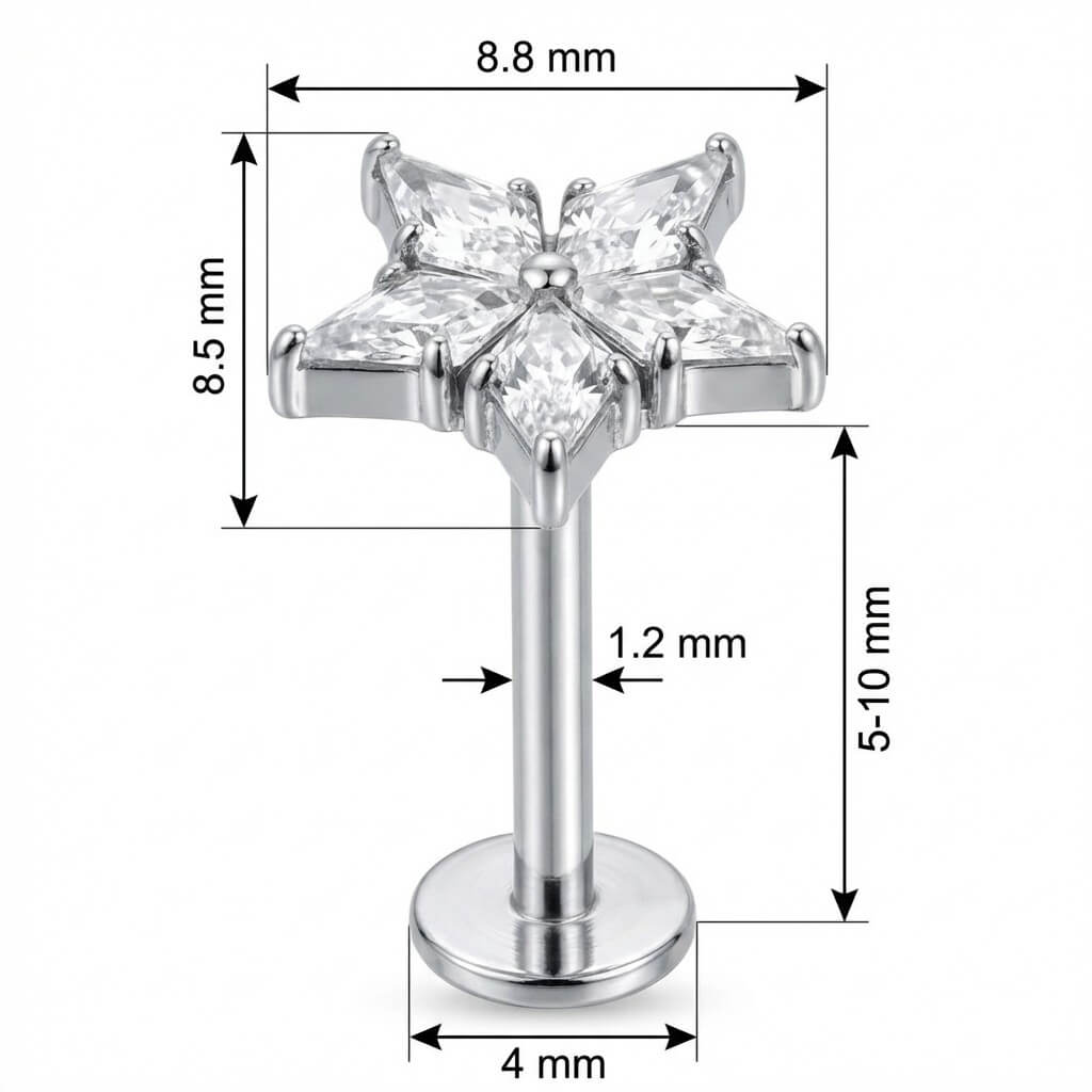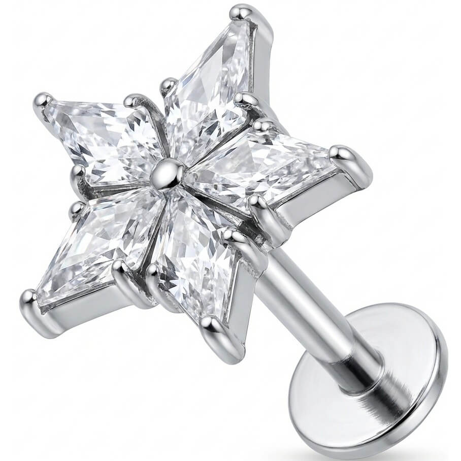 Titane Labret Étoile à Cinq Cristaux Filetage Interne