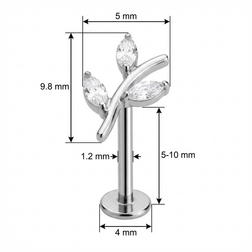 Titane Labret Branche Courbée Cristaux Marquise Filetage Interne